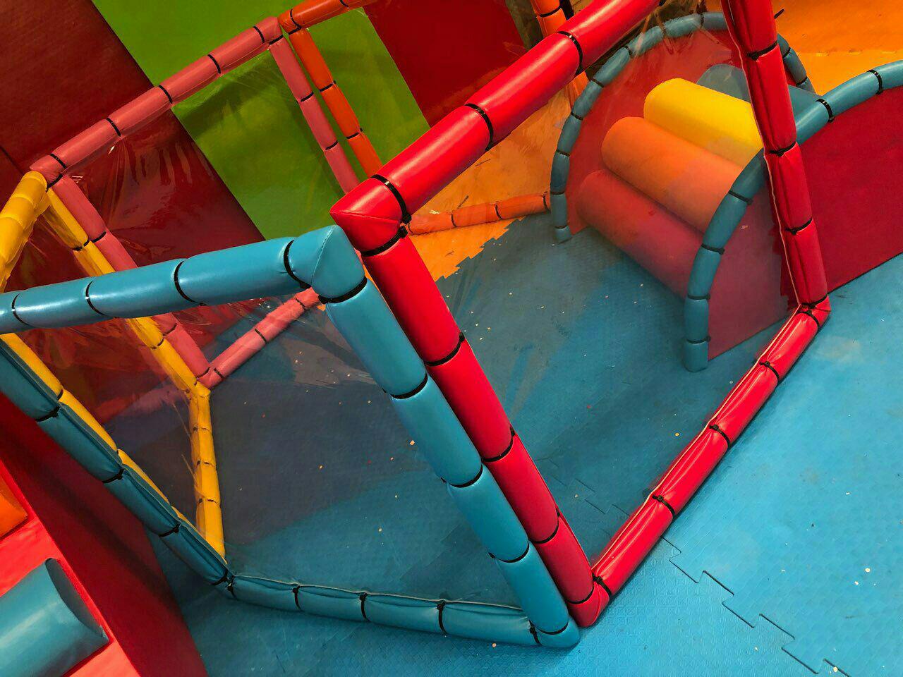 Köpük ve deri kaplama ile tamamen kapalı ve güvenli bir şekilde parlatılmış yumuşak alan, bu yapı top havuzu da dahil olmak üzere çeşitli motor denge oyunları içerir